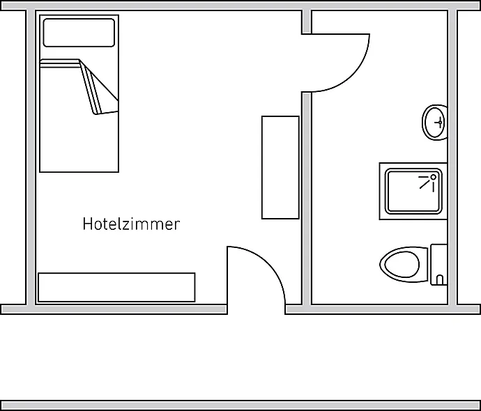 Für eine Badtür in einem Hotelzimmer empfiehlt sich der Einsatz einer Feuchtraumtür, da mit erhöhter Luftfeuchtigkeit und gelegenheitlichem Spritzwasser zu rechnen ist.
